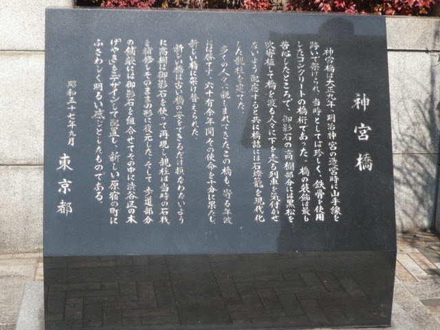 神宮橋は、明治神宮が造営されることになってから、原宿駅の南側に架けられた橋です。