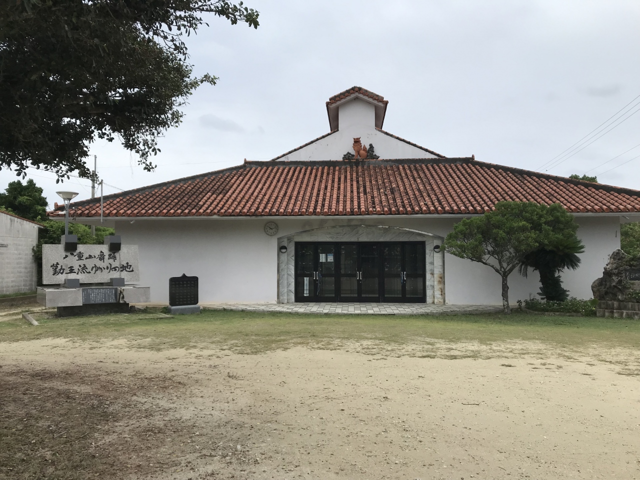 島の中心部でもある、東筋集落の黒島伝統芸能館のまえに大きな石碑があります。