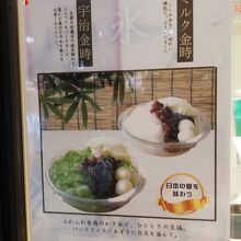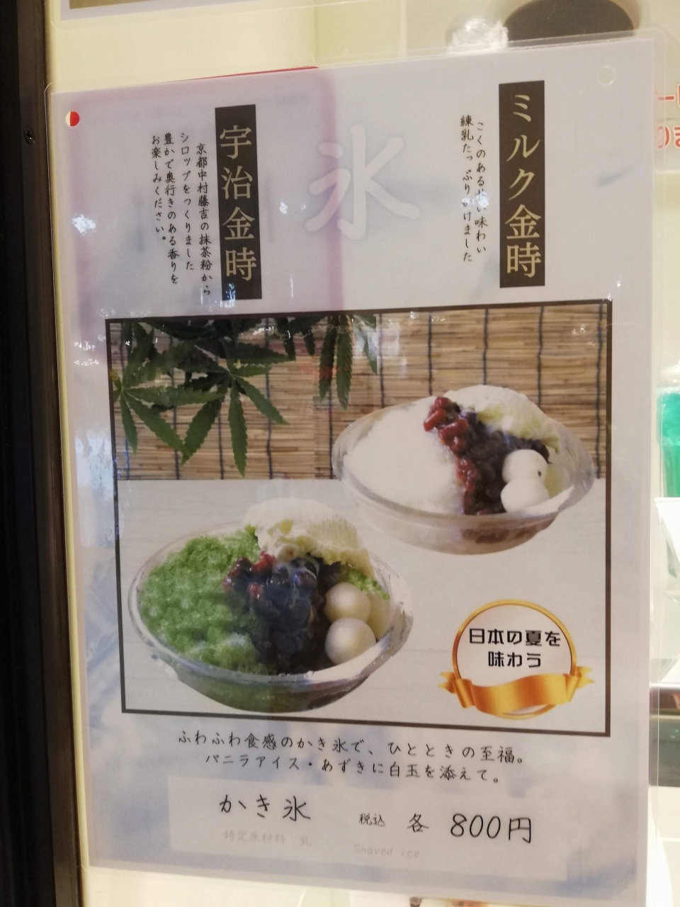 まだ五月なのにすっかり暑く、かき氷(800円)を頂きました。「宇治金時」と「ミルク金時」があり、宇治金時のほうにしました。