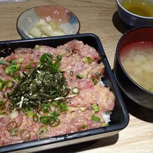 ランチメニューのまぐろ胡麻だれ重が絶品でした。濃厚な胡麻だれに漬けこまれたまぐろが、上品にご飯を詰められたお重一面に載せられ、ネギと海苔のトッピングがアクセントになっています。売り切れごめん状態で人気メニューのようでした。