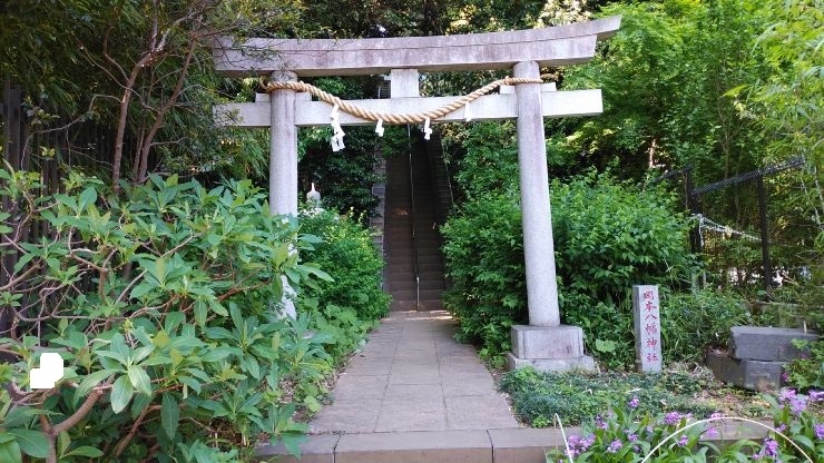 岡本民家園の上部にあり、国分寺崖線が通る斜面に鎮座している。そのため区内にいることを忘れてしまうような木々が豊かな空間となっている。社殿は小さな建物だが、木々に覆われ静かな環境だった。