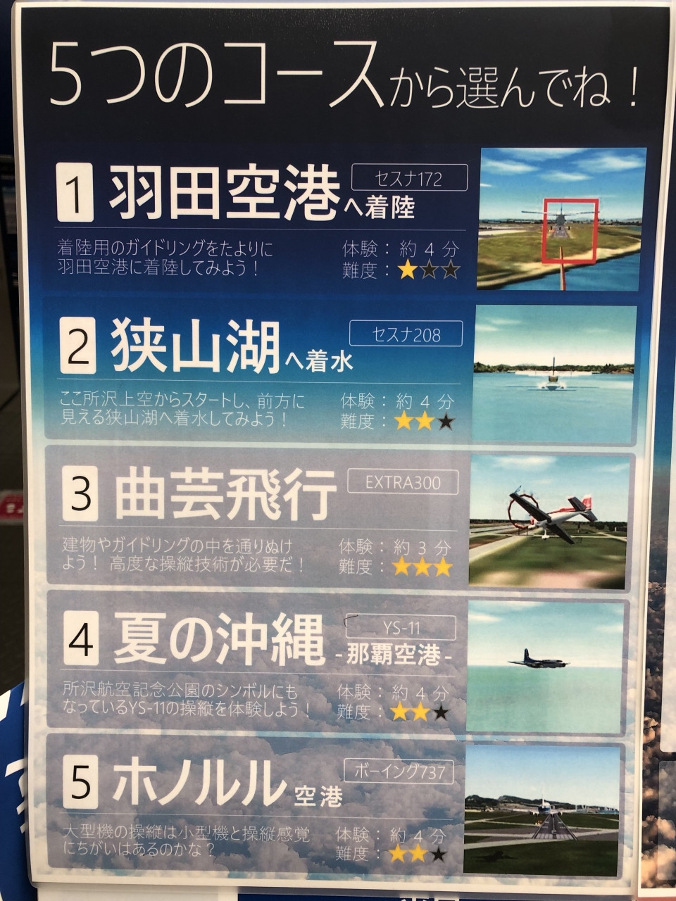 2階のフライトシュミレーターで5コースから選べます。