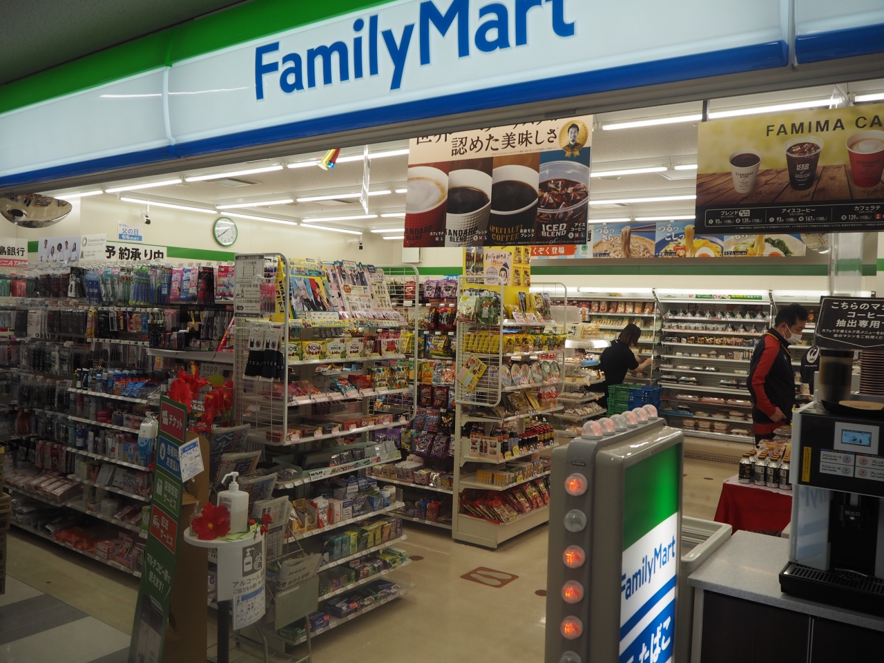空港ターミナルビルの2階の通路を通った端の方にコンビニのファミリーマートがあります。街なかのコンビニの広さに比べて半分ほどですが、空港では場所がらこれくらいでも十分です。やはりいろいろと商品があるのは何かの時に役立ちそうです。ファミマのチキンもあります。