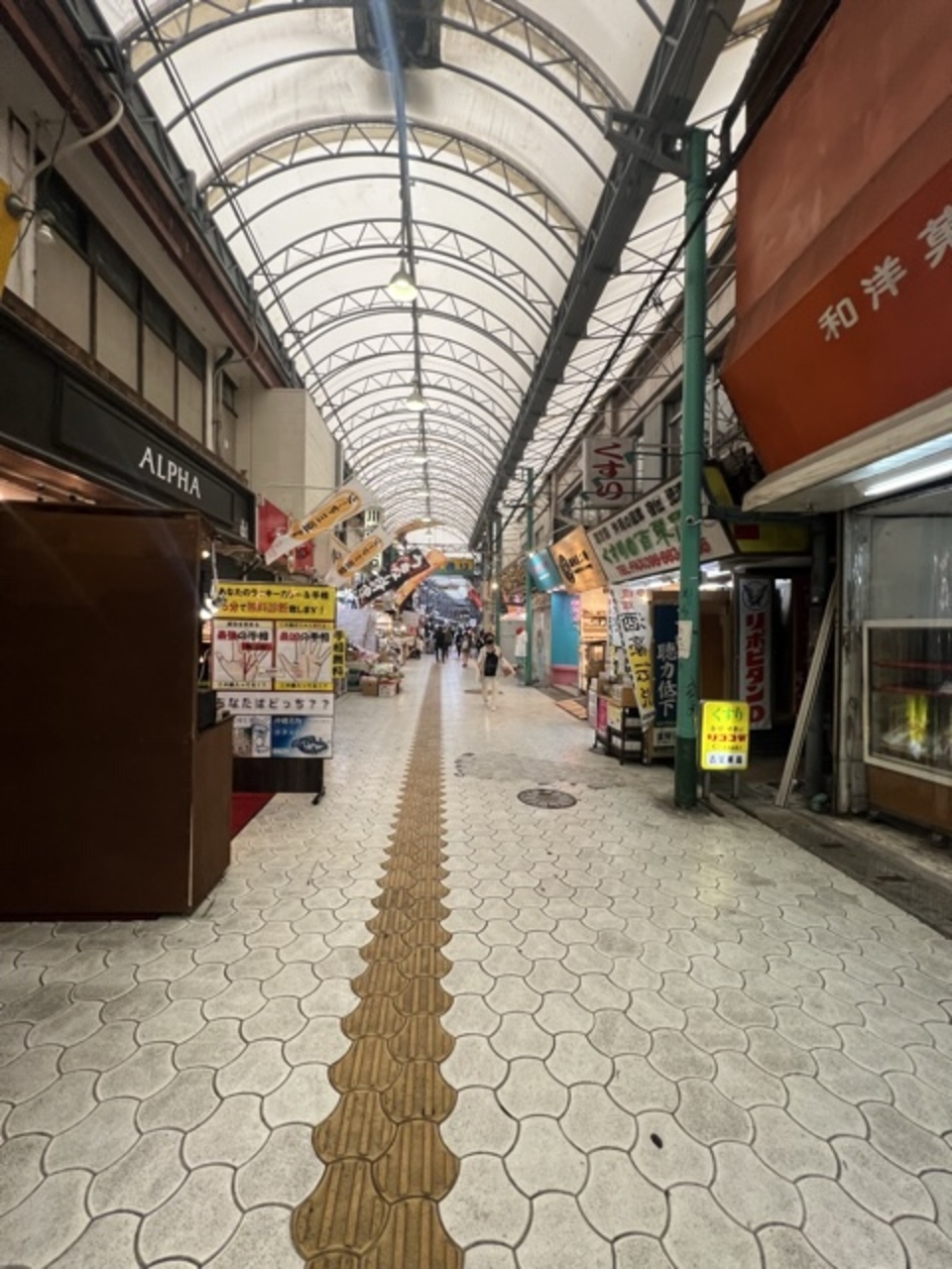 昼過ぎにスキューバダイビングを終えて昼飯を食べ飲み歩きをしている際にぶらりぶらりと散策しました。那覇国際通りから傍に入っていく通りです。お土産もの屋さんが軒を連ねています。特に欲しいものは無かったです。