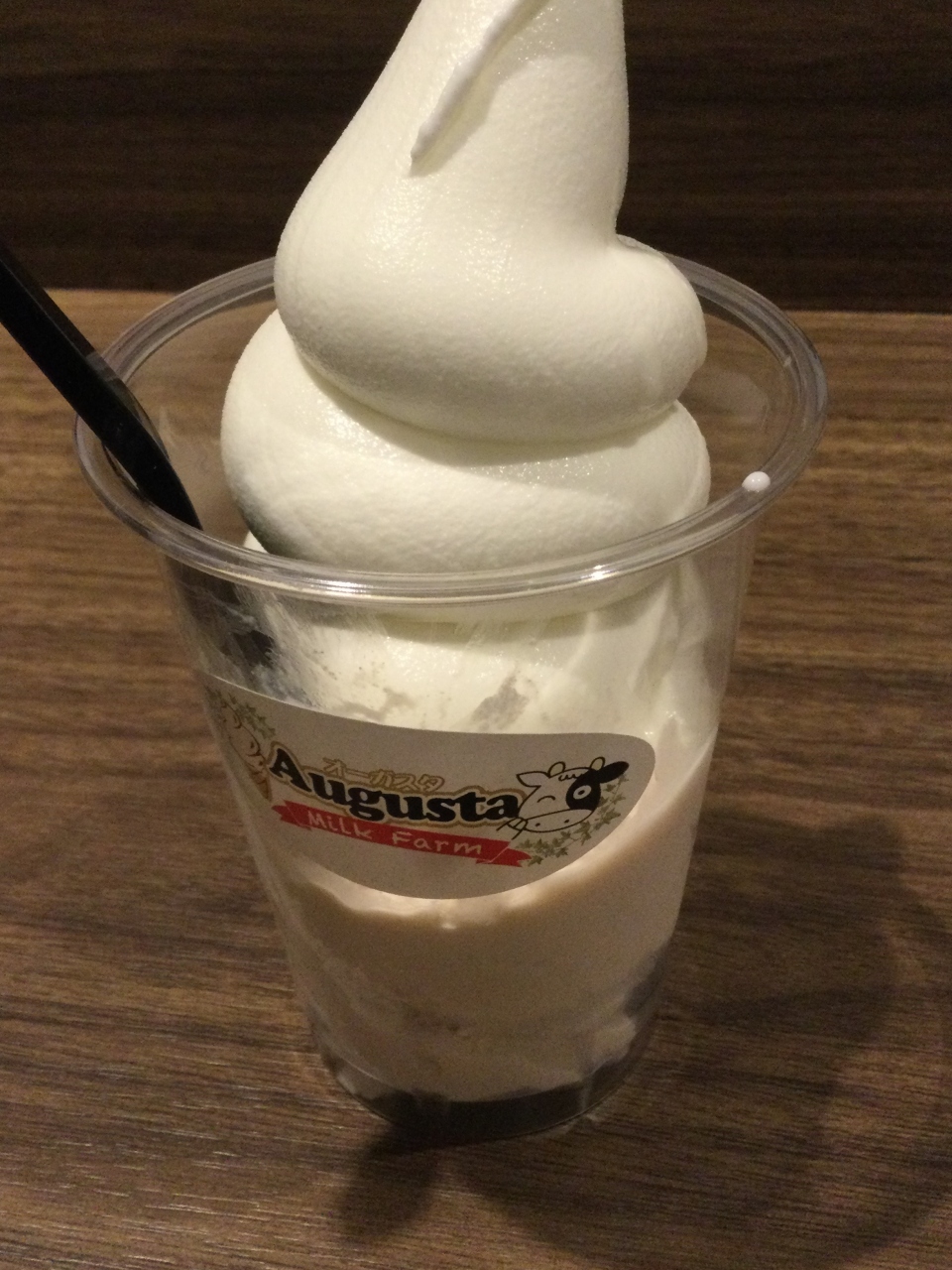 南町田グランベリーパーク内にあるソフトクリームのお店。ソフトクリームと季節限定のさくら餅のジェラートをいただきました。(これでシングルです)横浜市にある相澤良(あいざわりょう)牧場のお店なので、美味しさは間違いなかったです。