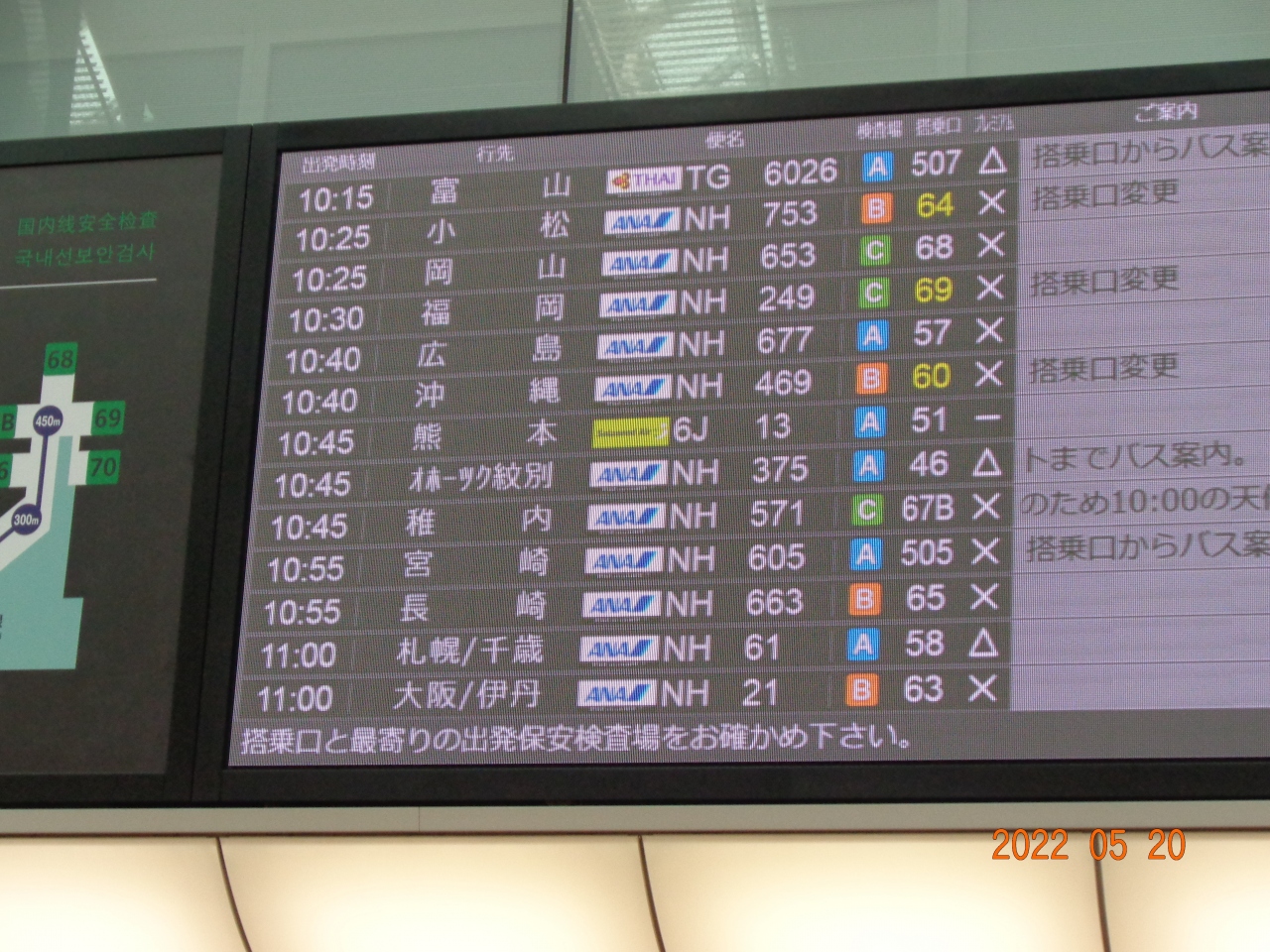 今回は人は若干増えたように思います。チェックインマシンは待ち時間無しで簡単にでき、搭乗券が手に入りました。利用する側には嬉しいですが、航空会社さんはどうなんでしょう。セキュリテイーチェックも待ち時間無しでした。スムーズにGATE68Bに進みました。