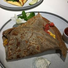 クレープはそば粉タイプのものに追加料金で変更も可能です。