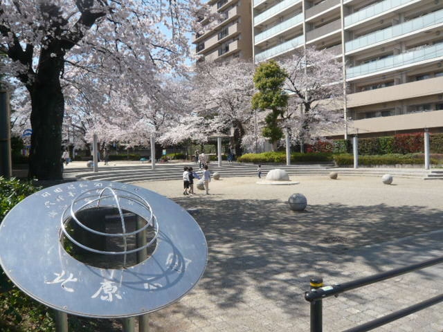 北原公園は、南浦和駅の北側に位置していて、線路沿いの道路に面しています。桜がきれいでした。
