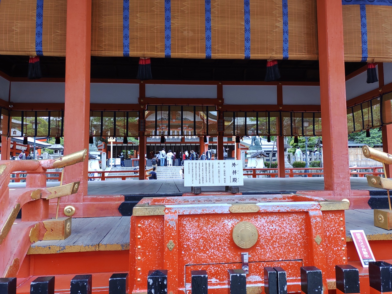 境内は、とても広かったです。全部回ると、数時間かかると思います。朱塗りの建物や鳥居が、美しかったです。根上がりの松やおもかる石などもありました。ちょうど神楽の演奏や、巫女さん方の舞いが行われていました。