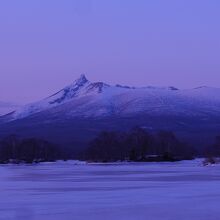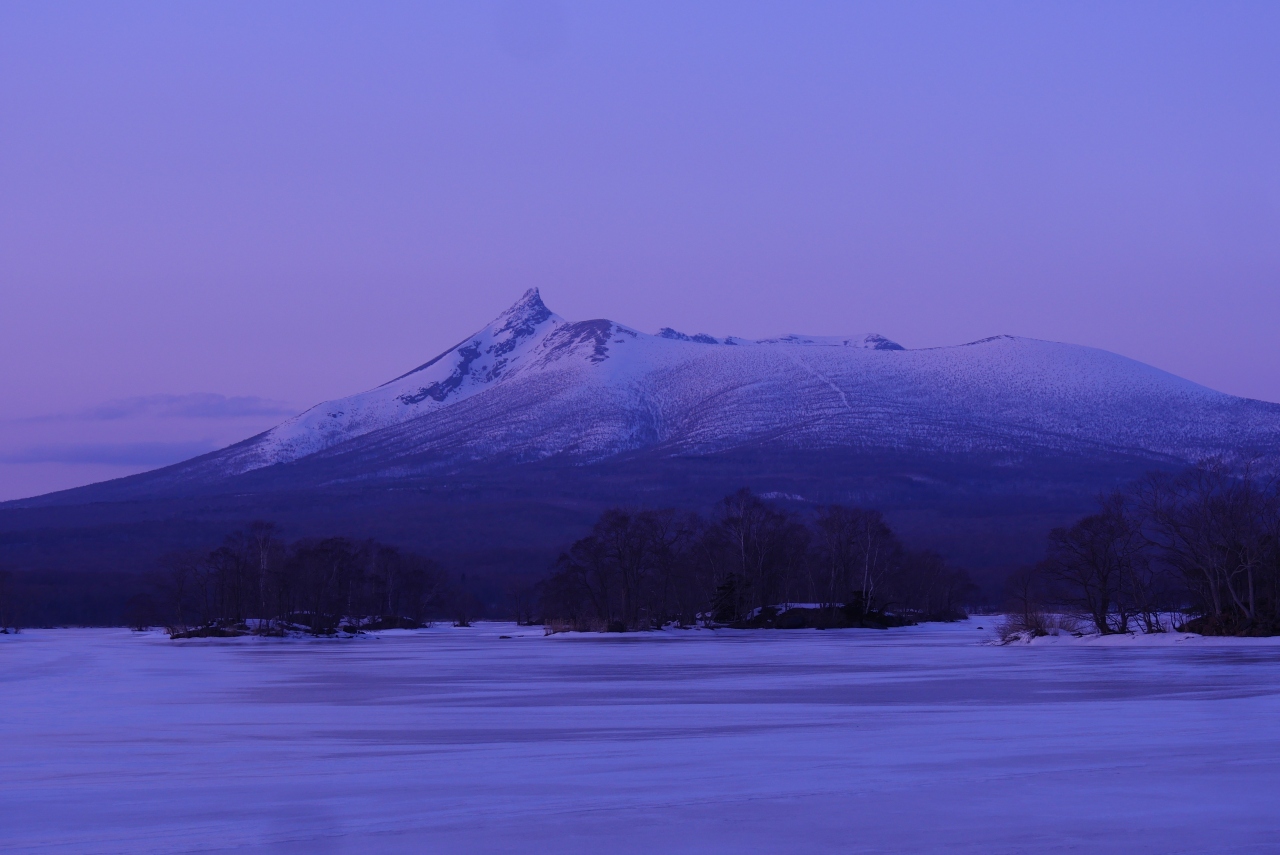 オフシーズンの夕暮れ時で誰もいませんでしたが、凍結した大沼と雪化粧の駒ケ岳がとても静かで美しかったです。