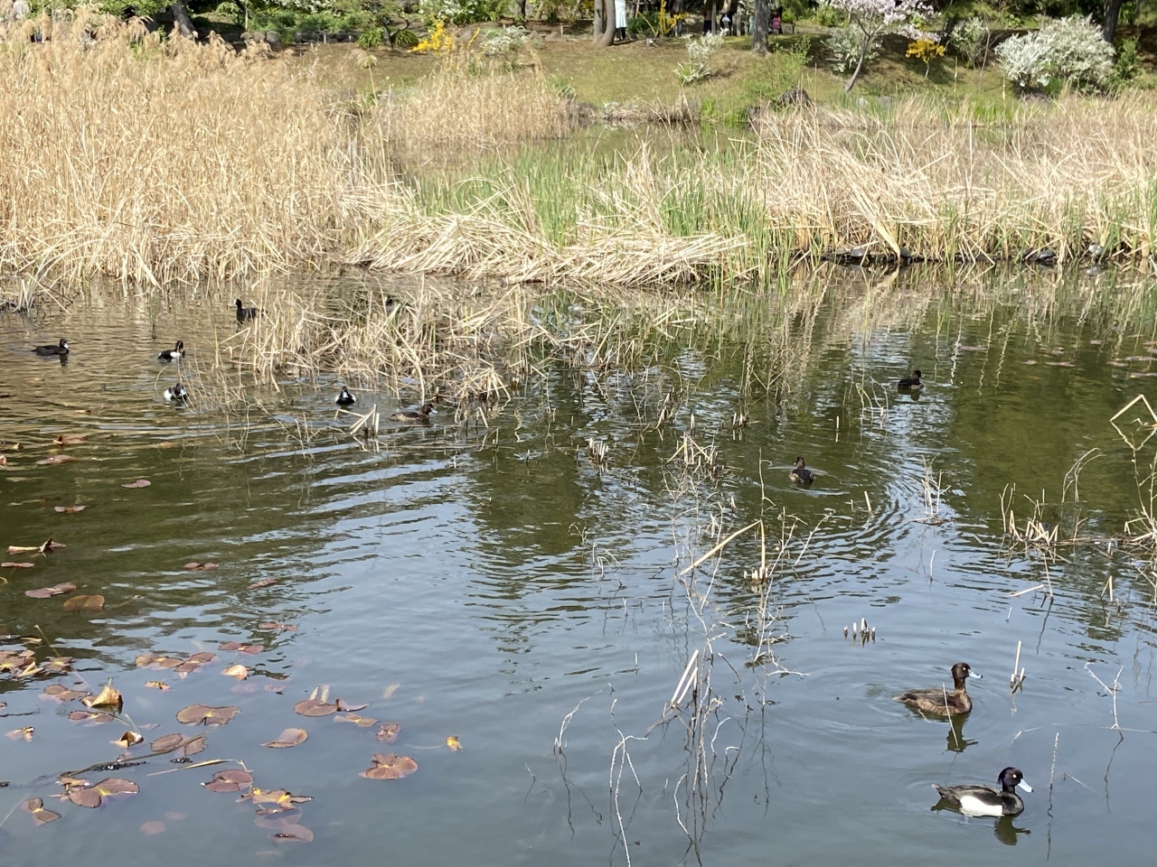 私たちは目的地の三渓公園に向かうため駆け足で通り過ぎましたが、池にはたくさんの鴨もいてのんびりした感じの所でした。