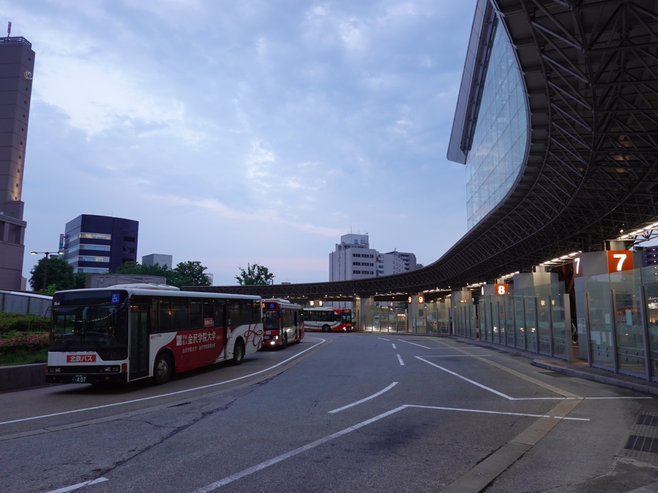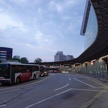 金沢市内の観光名所は駅の東口方面に集中しています。東口を出るとすぐの場所に円を描いたバスターミナルがあります。切符売り場には有人の窓口もあり、不明点などがあるとアシストを受けることも出来ます。観光客にとってわかりやすく、優しい施設という印象でした。
