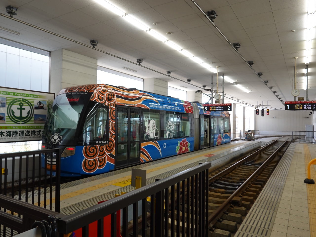高岡駅から越ノ潟駅までの12.9キロを万葉線株式会社のトラムが結んでいます。ヨーロッパの都市で見かけるようなお洒落なトラムで、中にはドラえもんのラッピング車両もあるそうです。高岡は駅ビル内にホームがあり、待合スペースも設置されておりとても快適に利用できます。
