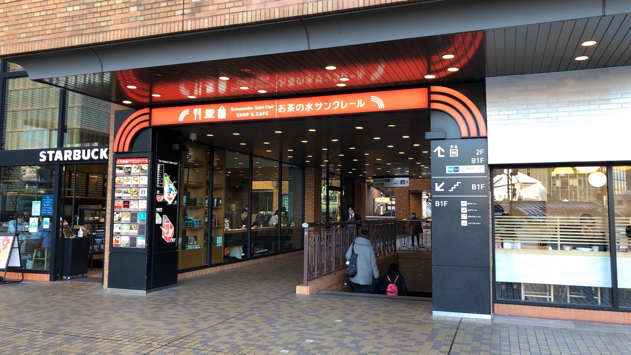 お茶の水駅前の複合施設です。レンガの外壁が特徴的です。高層階はオフィス、B1F~2Fが商業フロアとなっています。おすすめは、B1Fのレストラン・肉の万世です。その他、スタバやエクセルシオール、ディスクユニオンなどが入っています。