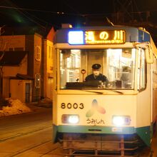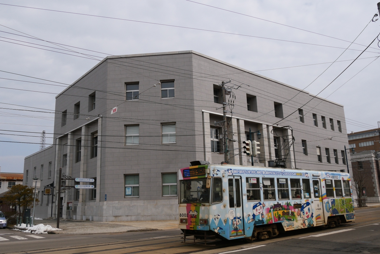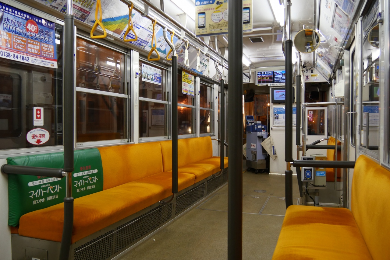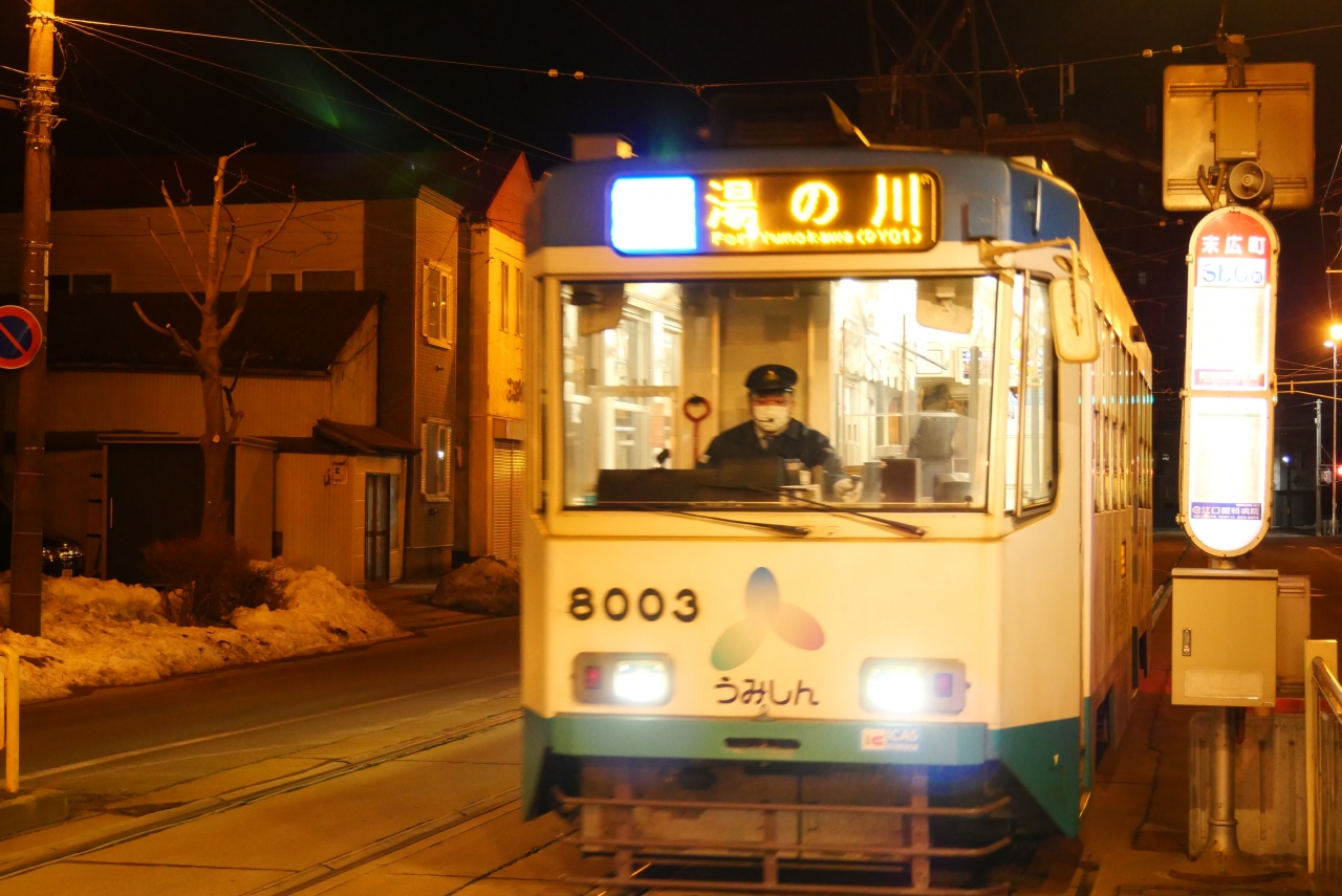 夜の函館の街は夜景だけではなく、レトロな建物がライトアップされていて、とてもきれいですが、夜の街めぐりにも市電は便利です。
