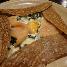 ブルターニュ地方のクレープと言えばそば粉の生地を薄く円形に焼き、色んな具材を載せていただくものです。日本人にも馴染みやすく美味しくいただけます。