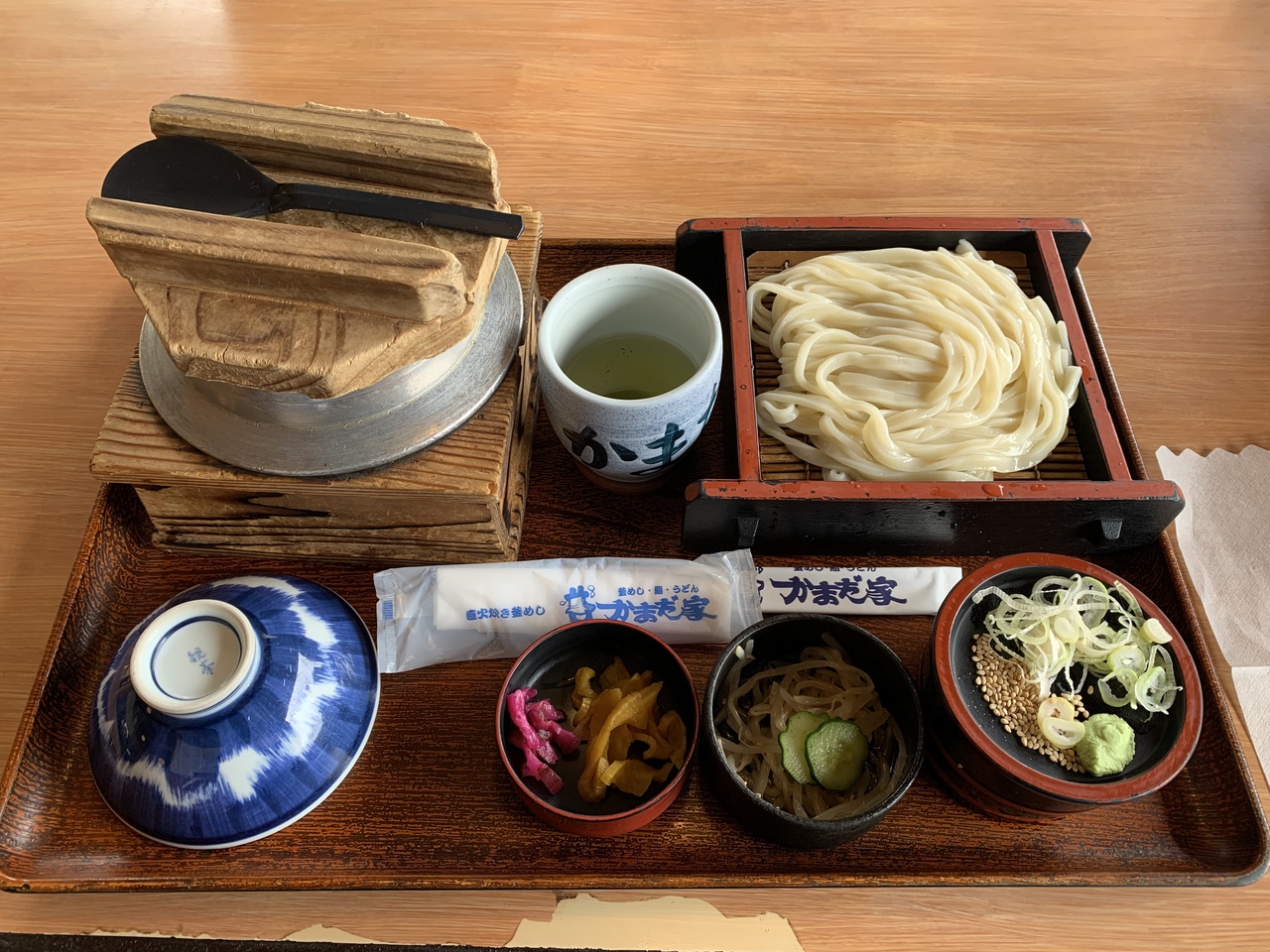 コシのあるうどんに具沢山の釜飯に付け合わせも