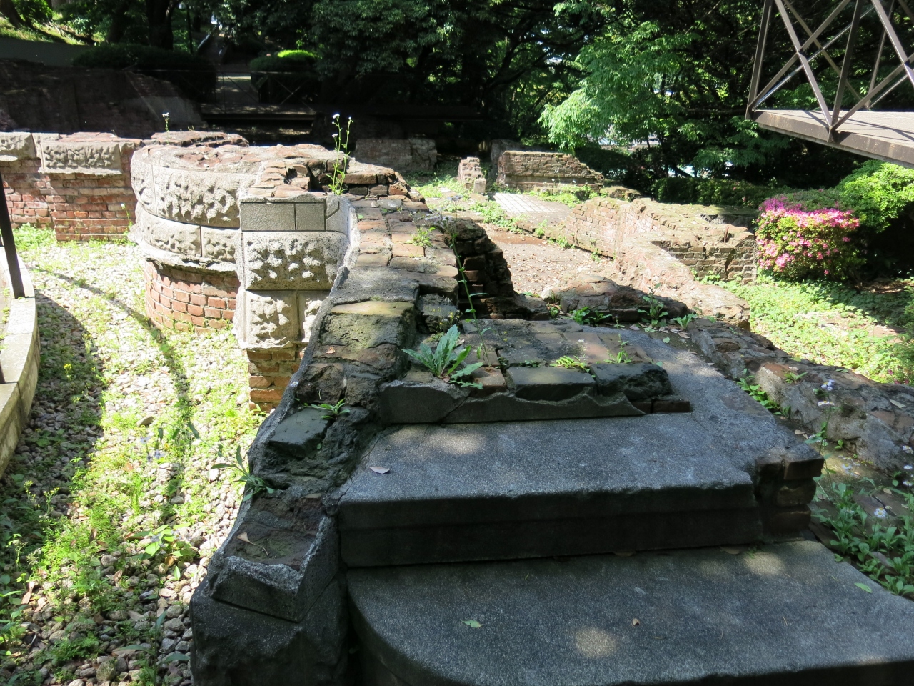 横浜の山手エリアにある洋館をめぐっていた際に、エリスマン邸を見学した後に山手80番館遺跡に立ち寄りました。レンガ積みの建物の土台部分と遺跡の説明がありました。関東大震災当時は、マクガワン夫妻の住居だったそうで、遺構から出土したというタイルが展示されており、華やかな色合いが綺麗でした。
