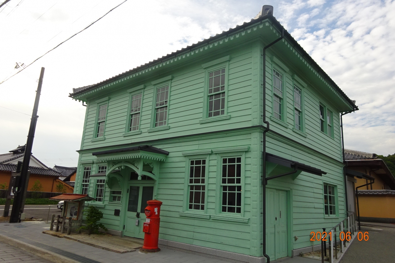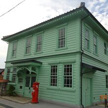 この近くの古民家ホテル宿泊時にホテルの方に案内してもらって訪れました。エメラルドグリーンが綺麗なクラッシックな建物で、今は妖怪ブックカフェとして利用されているそうです。残念ながら他の観光に時間が掛かって、夕食に近い時間になってしまいカフェメニューは利用しませんでしたが、リラックスできる空間になっていました。