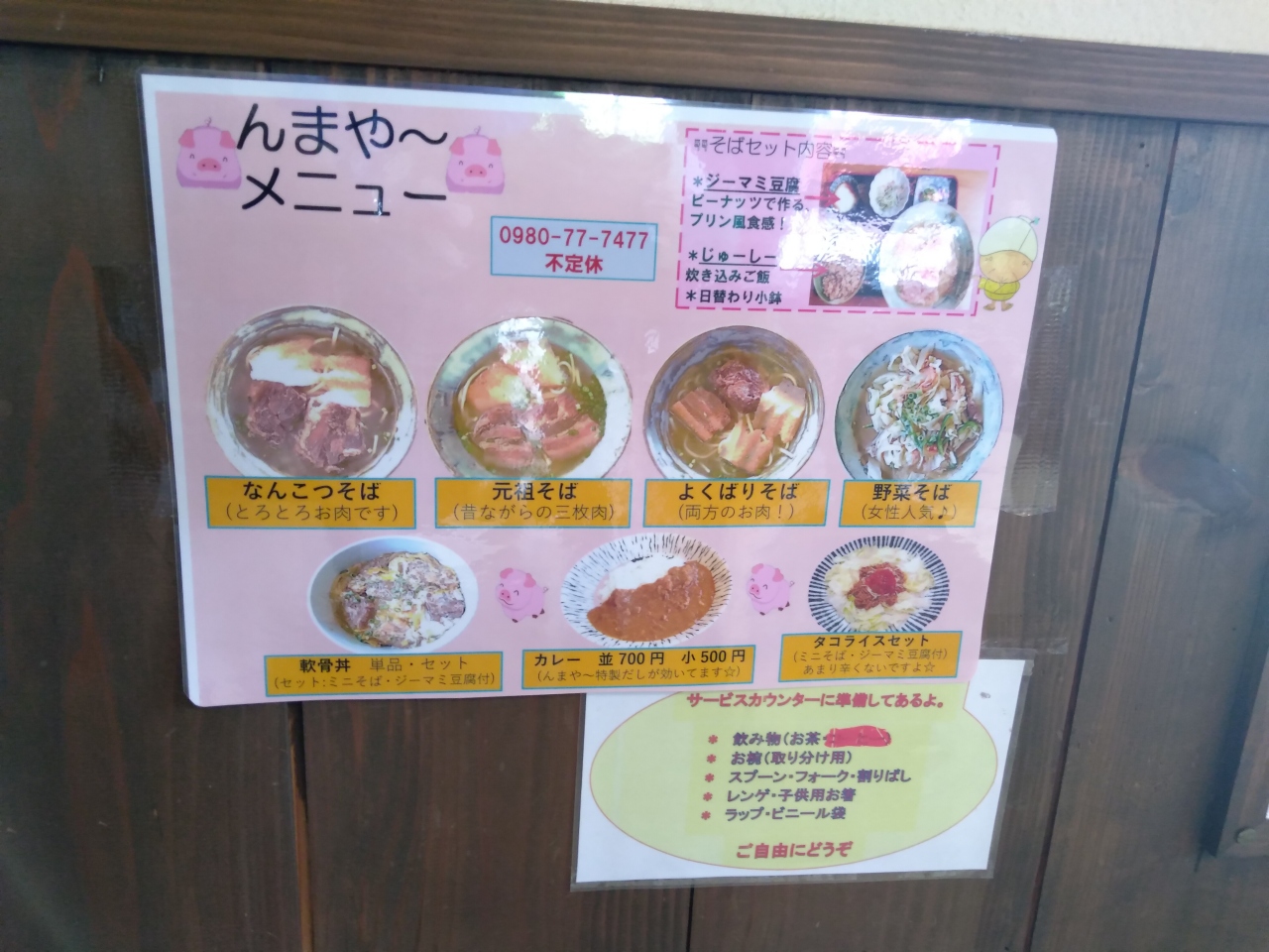 沖縄県宮古島の南、イムギャーマリンガーデンそばにあるにある沖縄料理店です。店内は靴を脱いで上がる感じで落ち着きます。自分が行った時客層は、ほぼほぼ観光客でした。そば類とのセット物は小鉢もたくさんあり、非常にボリューム満点のメニューです。お味はごく普通な感jでした。