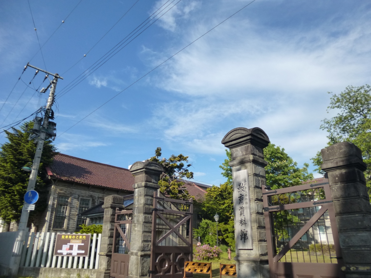 山形駅から東北方面に歩くと30分ほどのところに県立山形北高校があり、その敷地内に旧山形師範学校の建物と守衛所があります。高校とは別の入り口があるので、一般の人も見学することができます。元は、明治11年に旅篭町に新設された師範学校で、明治34年に現在の場所に新築移転されたそうです。ルネッサンス様式の木造桟瓦葺きの優美な姿の建物です。現在は「山形県立博物館教育資料館」として一般公開されているので、内部に入ることもできます。
