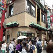 この行列は店舗で飲食する人々の列なので焼き物買うには直接店のレジへ向かう・・・
