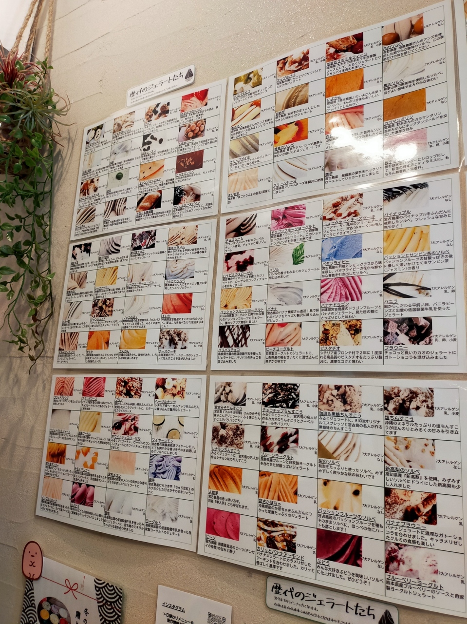 宮古島の味にこだわった本格的ジェラートのお店で、たっくさんの数え切れないほどのフレーバーがあるようですが、日替りで?いくつかが販売されています。