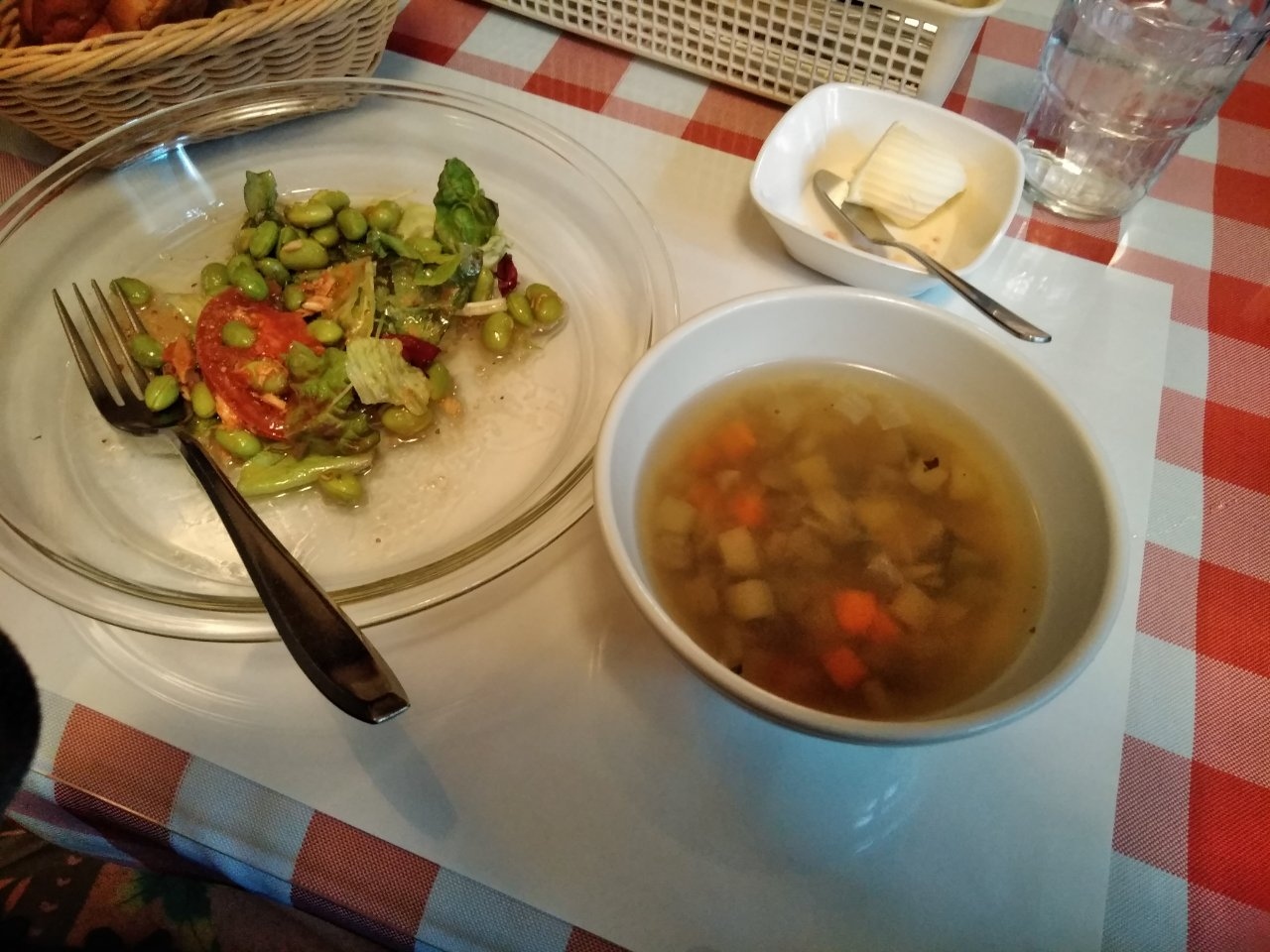 サラダやスープなどボリューミーなので、小食の方はお腹を空かせていくことがポイント(笑)。パンも美味しいのですが、食べきれなくて持ち帰りをお願いしたところ、大丈夫でした。
