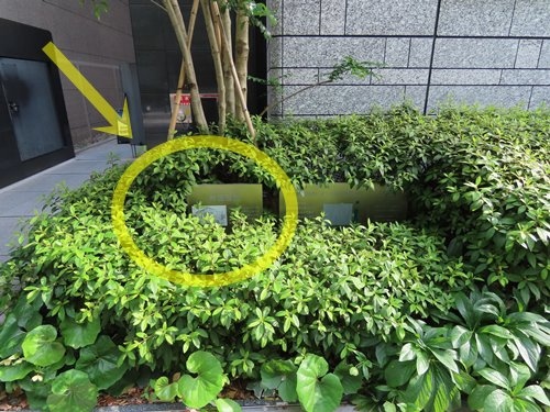 北浜エリアでさまざまな史跡な石柱・碑を見てまわりましたが、この帝国座跡が間違いなく難易度が高い、でしょう。土佐堀通りの一本南を東西に走る通りの北側に面していて、目印はゴルフショップなのですが、シュナイダー・エレクトリックという企業名も意識しておいたほうがよいかと、植え込みに碑が隠れているばかりか、碑と並んで「公開空地の適合標識」が同じデザインで並んでいるので、見落としがち。