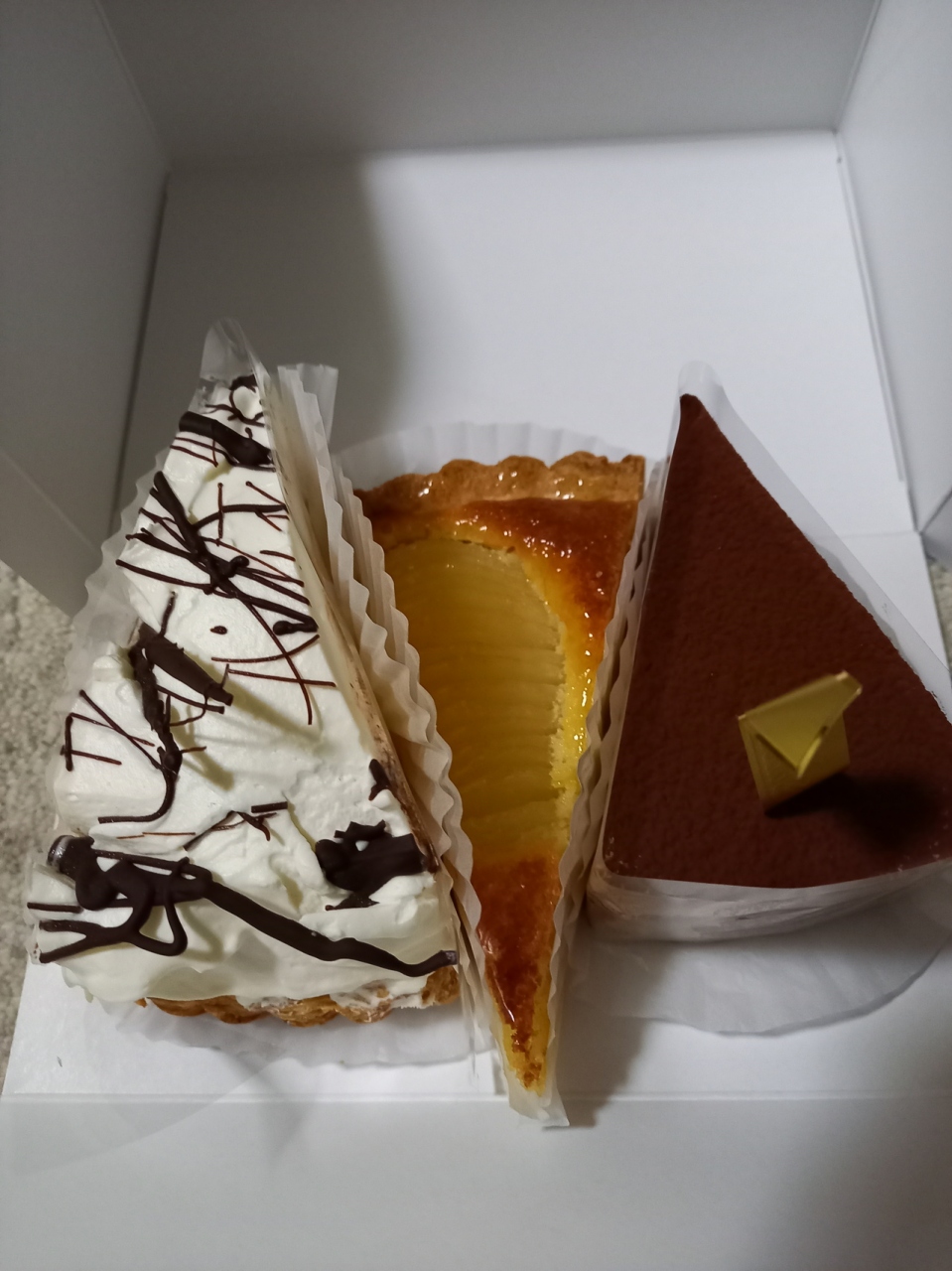ガラス張りの建物(奥にパチンコ屋とロッテリアとコメダ珈琲店)の地下にあるパティスリーです