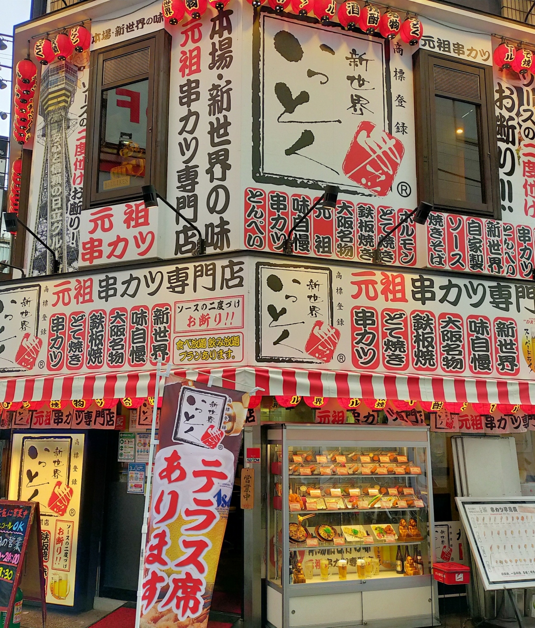 難波駅から徒歩5分ほど、ビックカメラの向かいにある串揚げ屋です。目的は串揚げ食べ放題と飲み放題。時間は90分でしたが、アッと言うまでした。少し種類が少なく紅生姜がなかったのが残念でしたがリーズナブルに満腹になりました。この界隈に何店舗かチェーン店があるのですが、食べ放題飲み放題がある店、無い店があるので注意です。