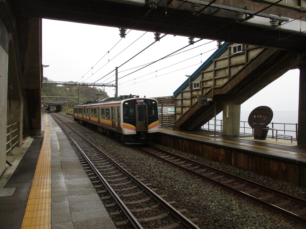 JR信越本線という名前を聞くと山岳エリアを走行する路線と思いますが、実は、日本海の海側のエリアも走ります。柏崎駅から湊方面の普通列車に乗り、1時間に1本くらいしか停車しない青海川駅にふらっと降りて、日本海の海を見ていました。