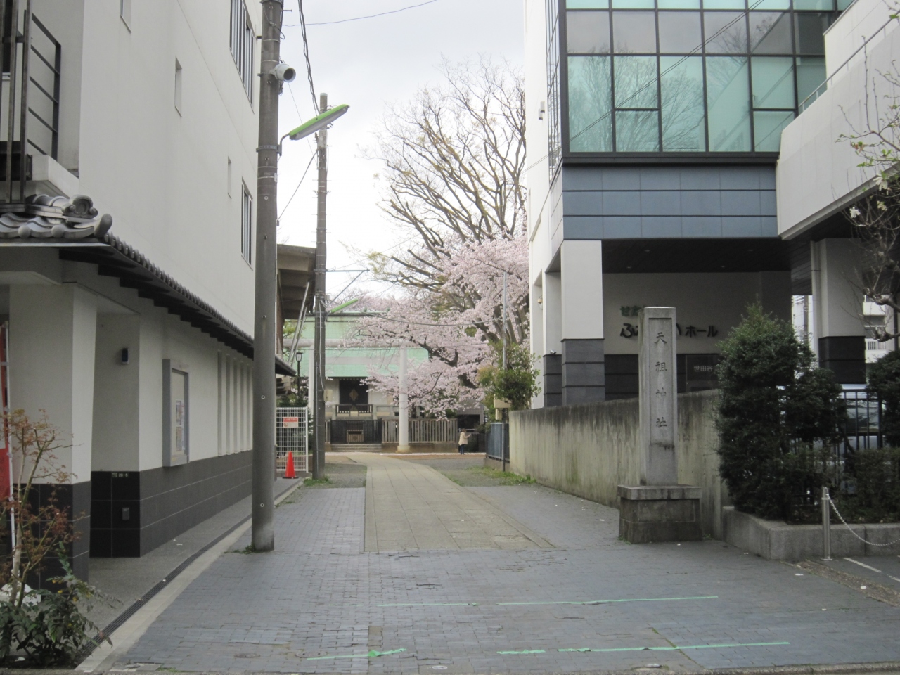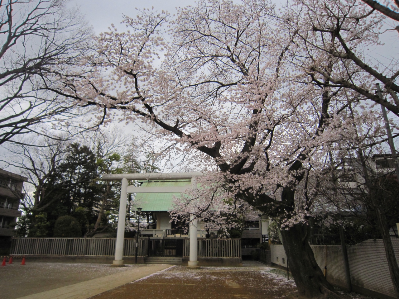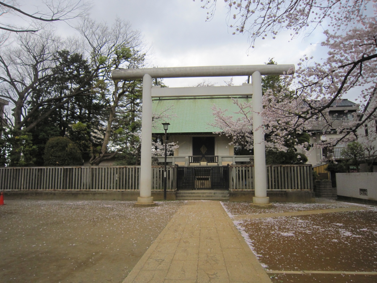 ボロ市通りから入ると参道右側や社殿敷地内の桜が満開で綺麗でした。大きな桜の木が何本かあり一人で花見をしたような感じです。参道の入口から桜の中に社殿がどっしりと鎮座しているように見えます。世田谷名物「ボロ市」が行われるボロ市通り、世田谷代官屋敷の左斜め向い、上町まちづくりセンターと信用金庫の間、長い石畳の参道の先に鎮座しています。東急世田谷線上町駅から徒歩約5分、バス停上町から直ぐです。神社の前は広場となっており、ボロ市の時は出店等が並び賑やかです。道路からやや入るため普段は静かです。左側には遊具があり、子供たちが遊んでいました。社殿は柵に囲まれ、社殿前の鉄扉は閉じられており中には入れません。開扉している時に一度参拝に行きたいです。