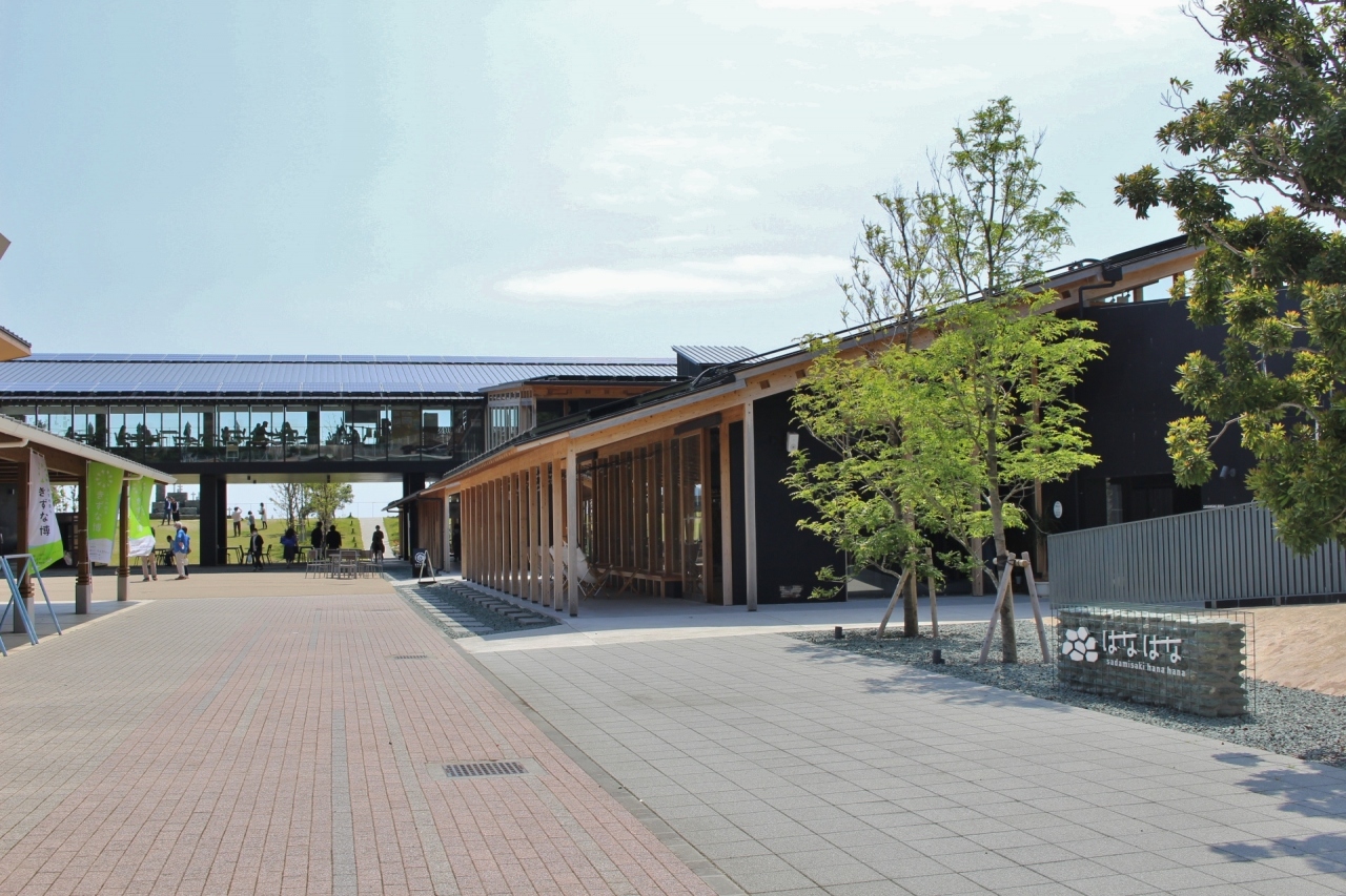 芝生広場に、「はなはな」を模したモニュメントがあり、ここで記念撮影する人が相次いでいた。施設2Fにある海の見えるしらす食堂は大人気で、大勢の人が入っていた。