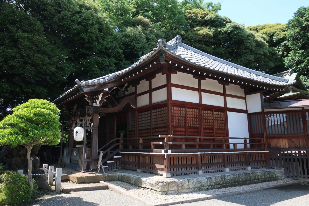 上中里駅で下車して駅前ある蝉坂を途中まで登っていくと、神社の境内に続く急な階段があります。なんだか脇から入るみたいで申し訳ないのですがこの階段を上って神社の境内に入りました。電車の駅のすぐ近くだというのに境内はとても静かで、森に囲まれているのでとても涼しかったです。