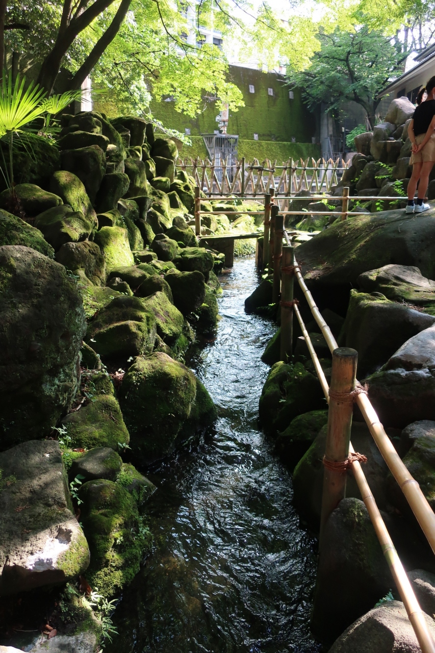 王子駅からすぐ近くにある親水公園です。隣を流れる石神井川から水を引いています。飛鳥山と王子神社の二つの高台に挟まれた渓谷のようになっていて、子供たちが水に入って涼しそうに遊んでいました。流れの水はろ過装置で混合物を取り除き、渓流は定期的に清掃が行われているので安心なんだそうです。