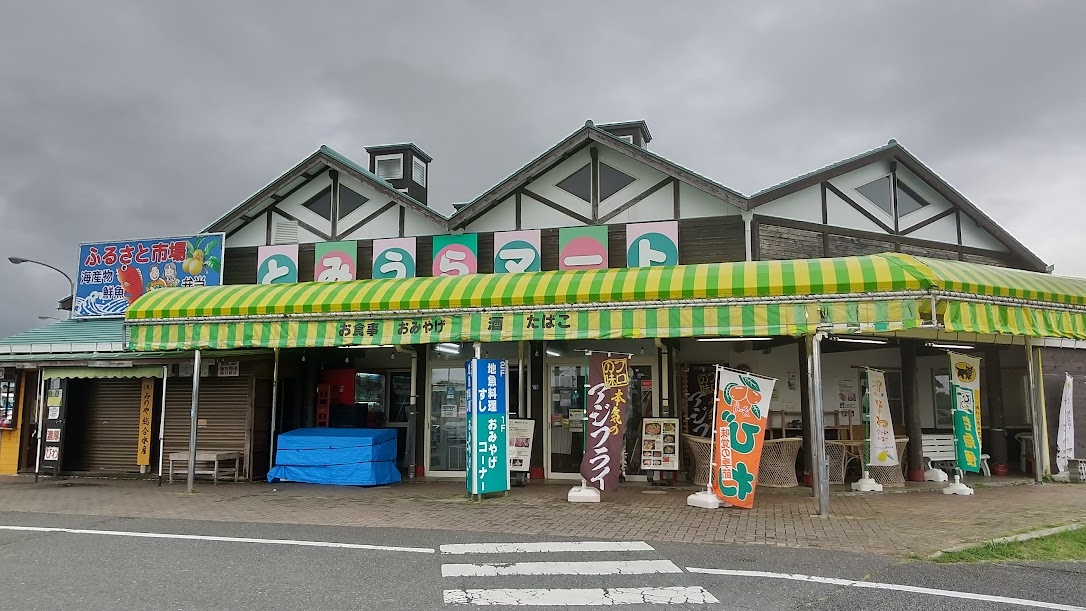 「道の駅 とみうら枇杷倶楽部」にはおしゃれな作りの枇杷倶楽部にビワ製品を中心とした土産物が並んでいるが、その隣にある野菜、海産物産直品、土産物販売所が「とみうらマート」で2階が地魚料理、寿司の食事処。