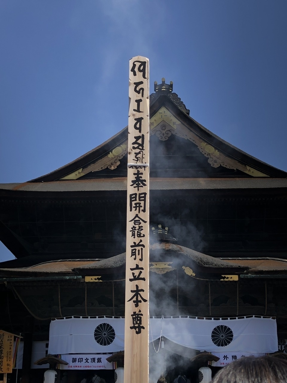 ご開帳の時は、紐で御本尊と繋がった高さ10mの巨大な回向柱が建てられます。回向柱に触る事で、極楽浄土にいけるそうです。日曜日の午前中は80分待ちでした。そして、前立御本尊と回廊巡り、こちらも80分待ちでしたが、地下の回廊巡りが本当に暗闇の中を進む、とても面白い体験でした。他には聞いたことないので、是非体験してほしいです。