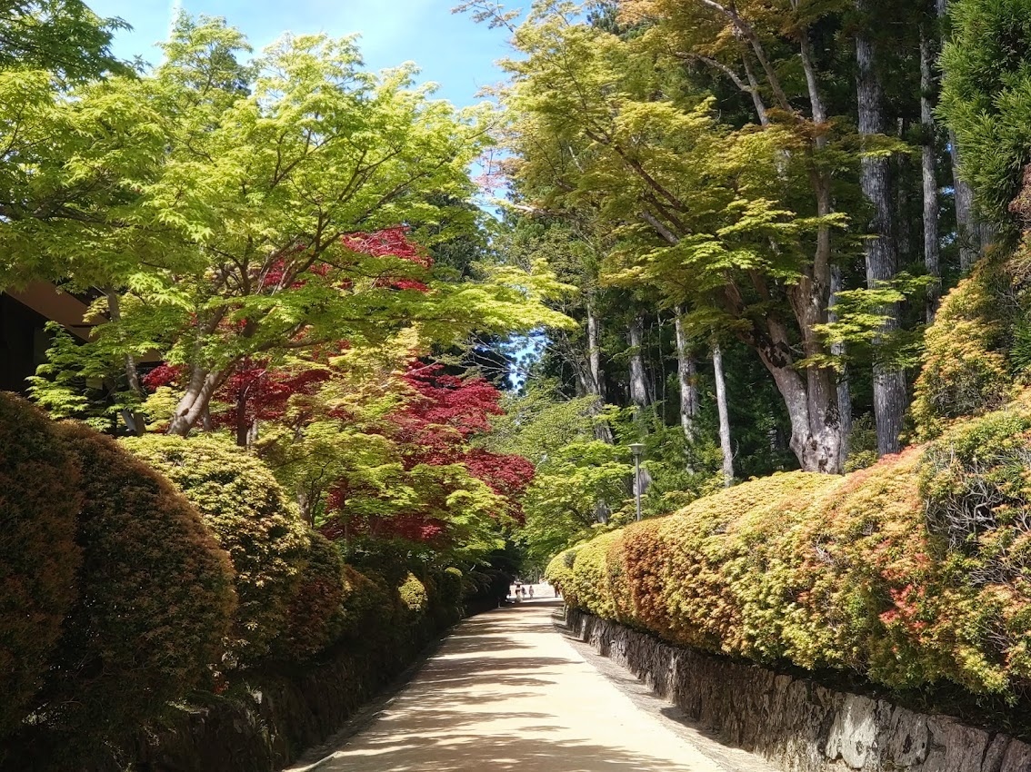 高野山の金剛峯寺から壇上伽藍へと続く道です。蛇腹と名前がついていますが、うねることなく真っ直ぐな道でとても雰囲気が良かったです。ここだけ京都といった感じ。紅葉の時期が最も美しいそうですが、春でも十分楽しめました。