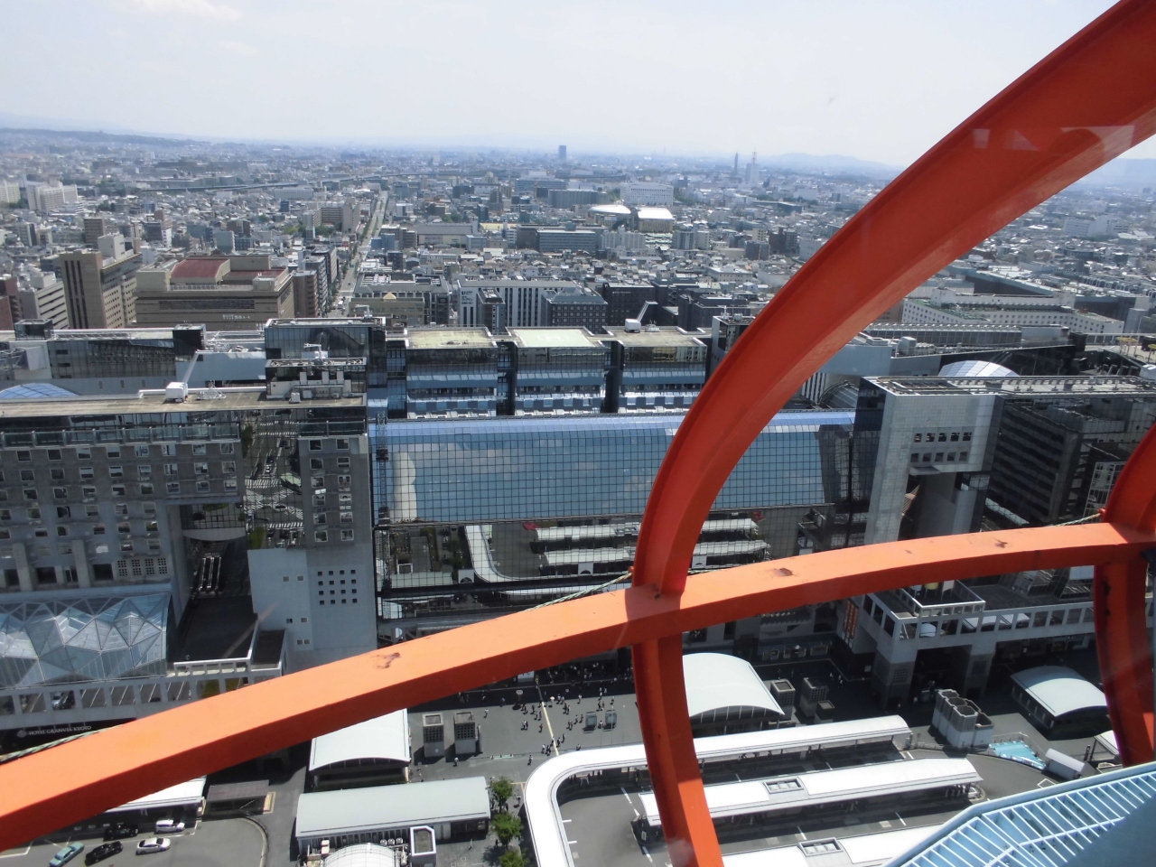 日曜日の京都タワーの展望スペースは、家族連れや修学旅行の生徒で