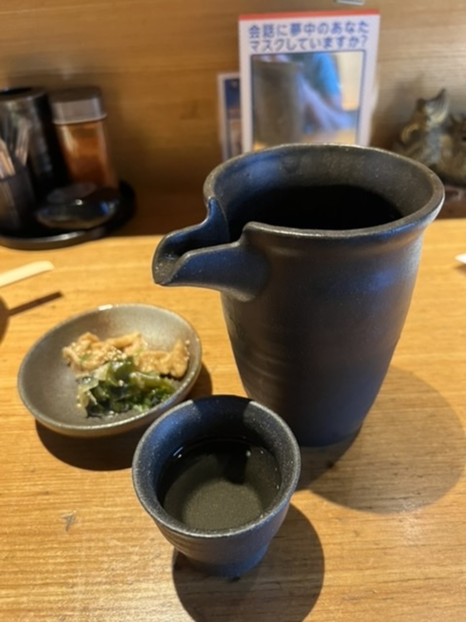 先ずは日本酒!黒牛を2合いただきました。焼鳥ははつもと、ももを2本ずつ。そして地獄鶏鍋!辛そうです。辛さは初級、中級、上級、閻魔、デビルとありました。中級にしましたが汗だくでした。