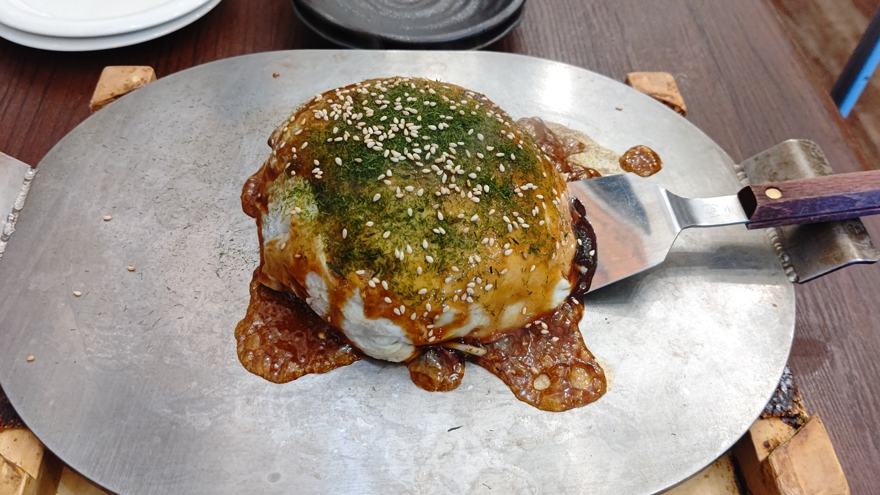 今日は広島駅2階にある電光石火というお好み焼きランチをした。お好み焼きを食べるときはいつも肉玉そばで。そばシングルかダブルだが今回はシングル。