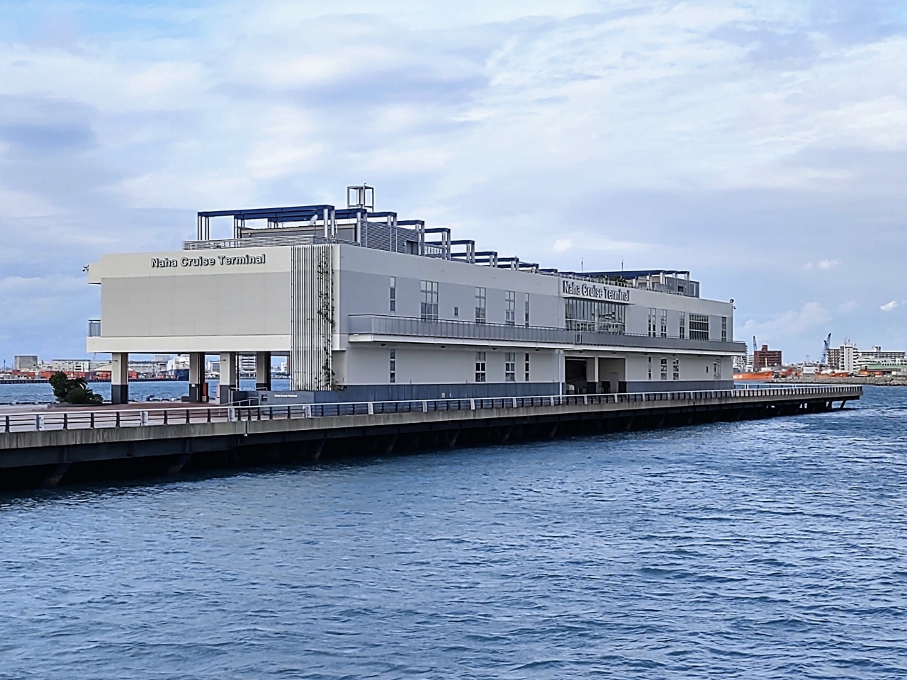 サイクリングで若狭公園付近を走っていると海に突き出た一角に大きな船のようにも見える建物、何やろと思っていくと「那覇港クルーズターミナル」でした。当日は客船の帰港時ではなかったため、閑散とした雰囲気。2014年にOPENしていたそうです。中に店舗があれば観光スポットとして利用も出来そうです。夕陽をバックに景色が楽しめそう!