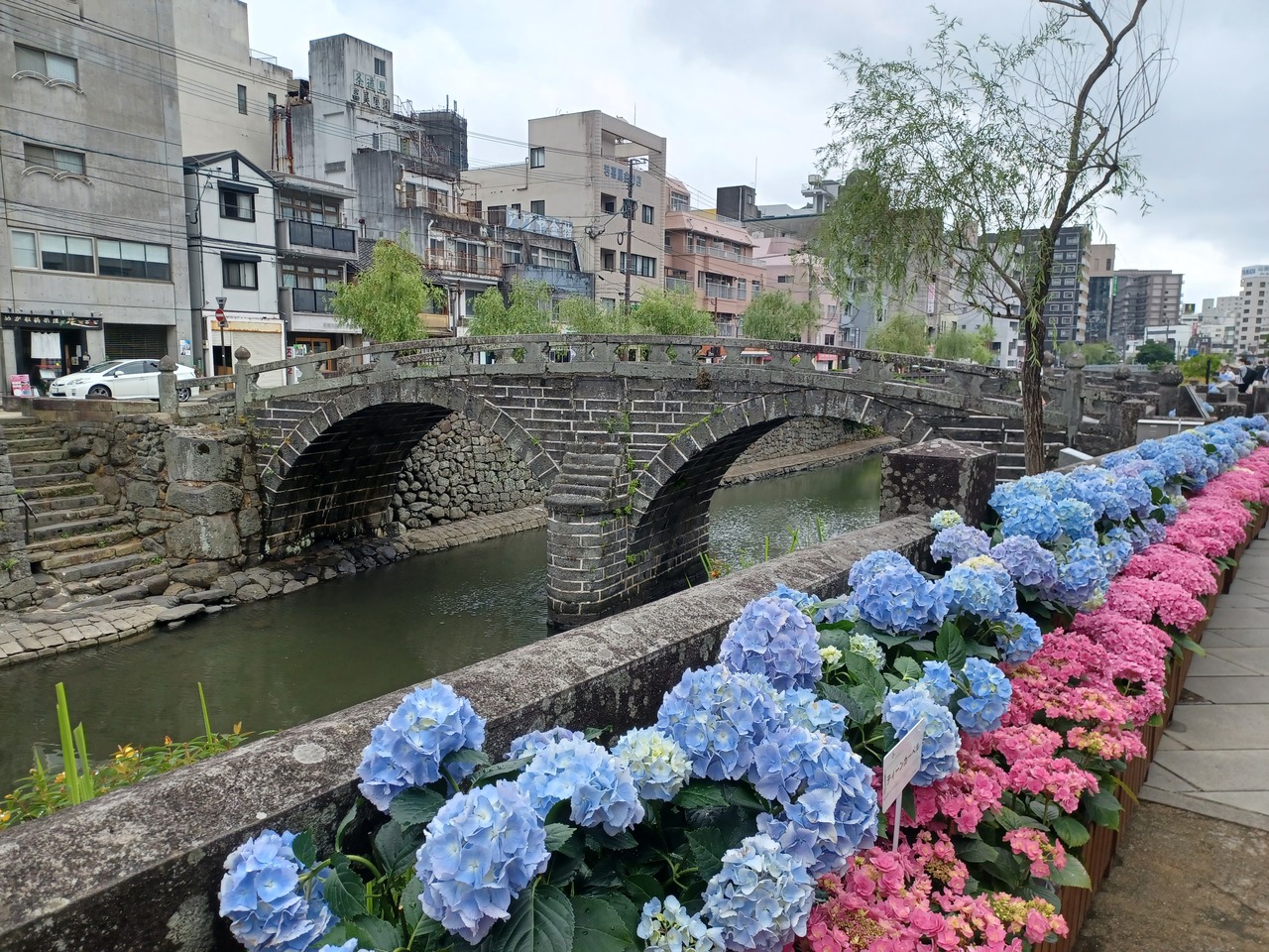 2022年5月30日で、眼鏡橋付近には沢山のあじさいが咲いており、とても綺麗でした。
