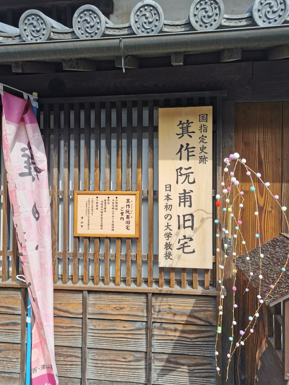 箕阮甫旧宅作は城東町並みの津山洋学資料館の前、道路に面しています。車は津山洋学資料館に停められます(無料でした)。城東むかし町家として一般に開放されていました。そんなに広くはないです。箕作阮甫さんは、幕末の蘭学者だそうで、生家と奥の蔵が見学できます。昔の物が展示物されていて興味深いです。
