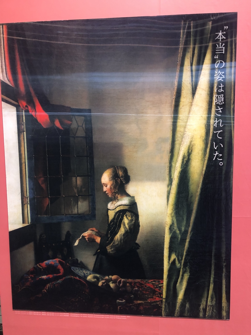 フェルメールの現存する作品は35点ほど。この展覧会では『窓辺で手紙を読む女』1点のみ。この作品は壁に描かれたキューピットが何者かに消されていたが、調査の結果元通りに復元されたことで話題になった。