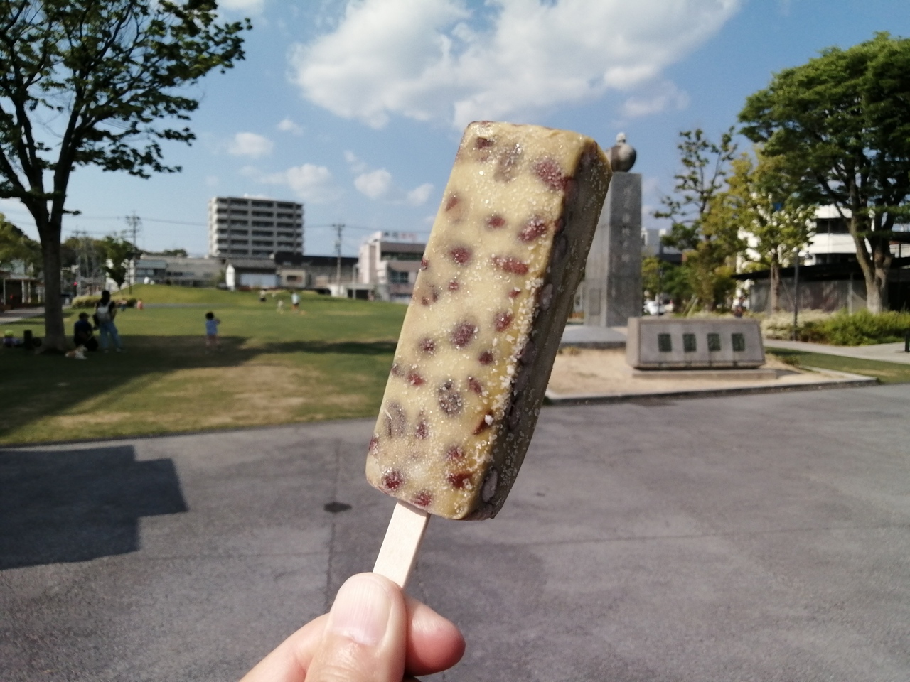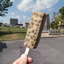 今シーズン初の「くずバー」をいただきました。全8種類の中から選んだのは…「ほうじ茶ミルク」(どれでも1本税込200円)。さて、お味は…うまーい!ほうじ茶というより抹茶風味でしたが(個人の感想です)、とにかくうまかったです。あずきもたっぷり。アイスではないのでもちもち食感で結構腹にたまります。