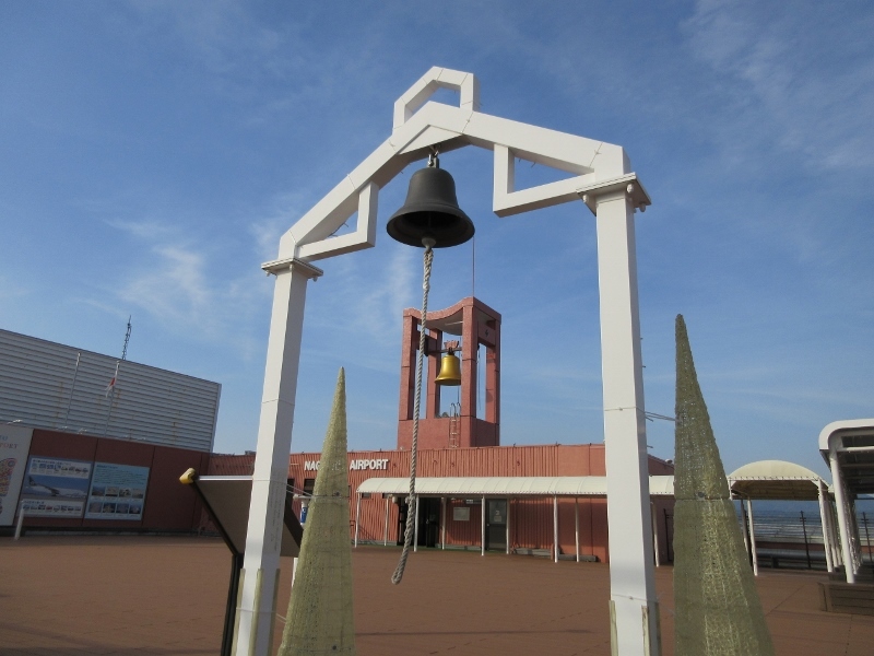長崎市内ではないので、市内の雰囲気とは違います。それほど大きい空港ではありませんが、五島や対馬、壱岐の離島便もあるので発着便数はそれなりにありました。壱岐から到着して乗り換えました。時間があったので屋上に行ってみたら長崎の鐘が展示されていて、平和への思いを感じました。