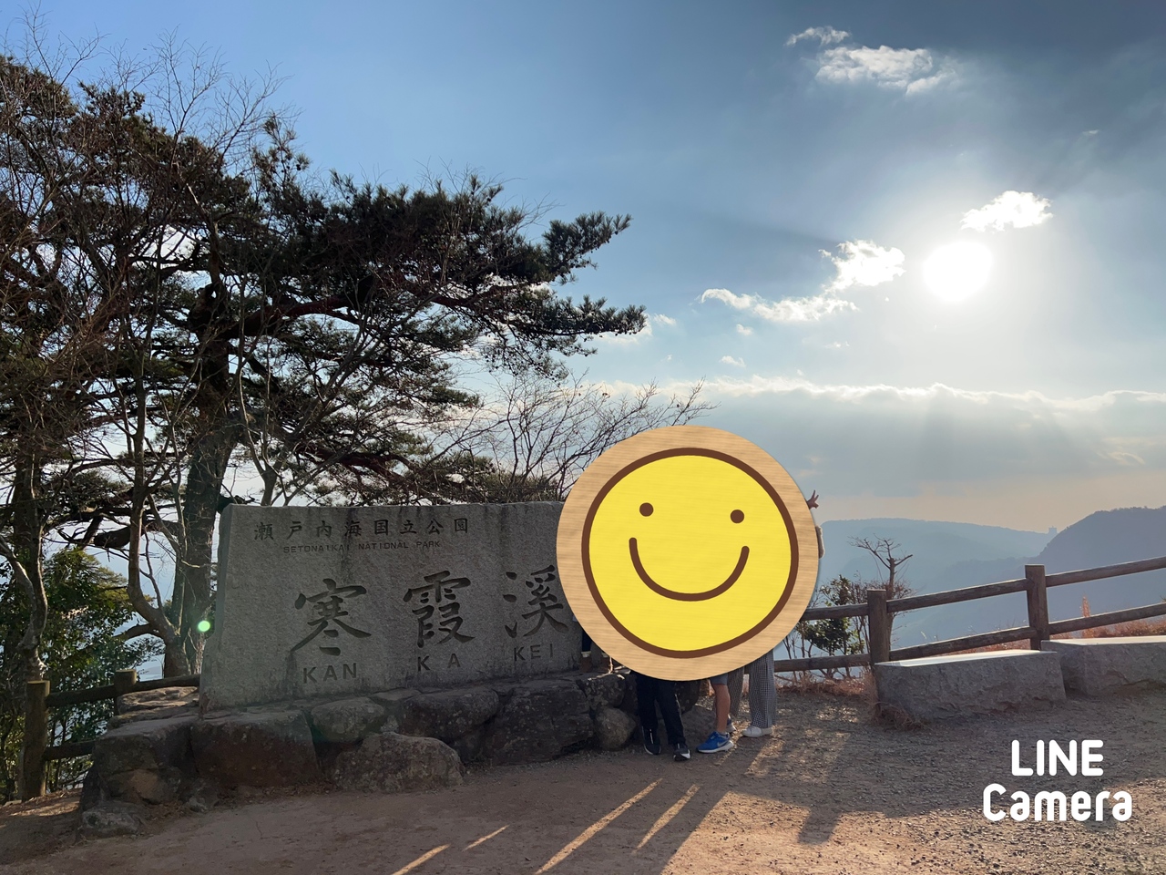 小豆島の観光スポットです。寒霞渓からのぞむ、小豆島の山々、空気しばらく座って眺めていられました。石造のそばでは石を投げて先にある丸い円の中に放る遊び?運試し?のようなものがあり子どもたちと挑戦しましたが、風がピューと吹いて全く入らず…これもまた思い出です。