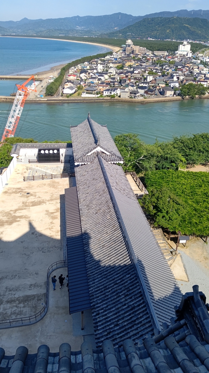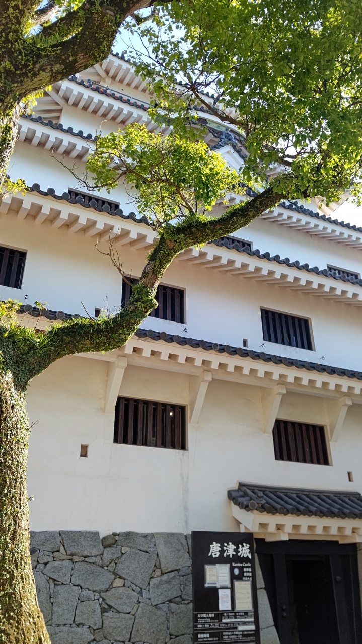 天守閣からの眺めは眼下に唐津湾、虹ノ松原と最高のロケーションでずっと見ていられます。藤棚や桜の木があり季節ごとに花も楽しめそうです。